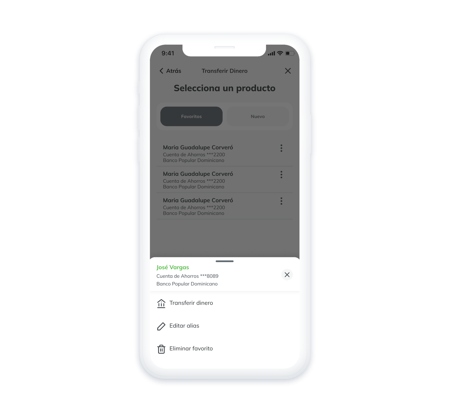 ¿Cómo puedo editar o eliminar un favorito de retiro por transferencia hacia una cuenta de BHD?