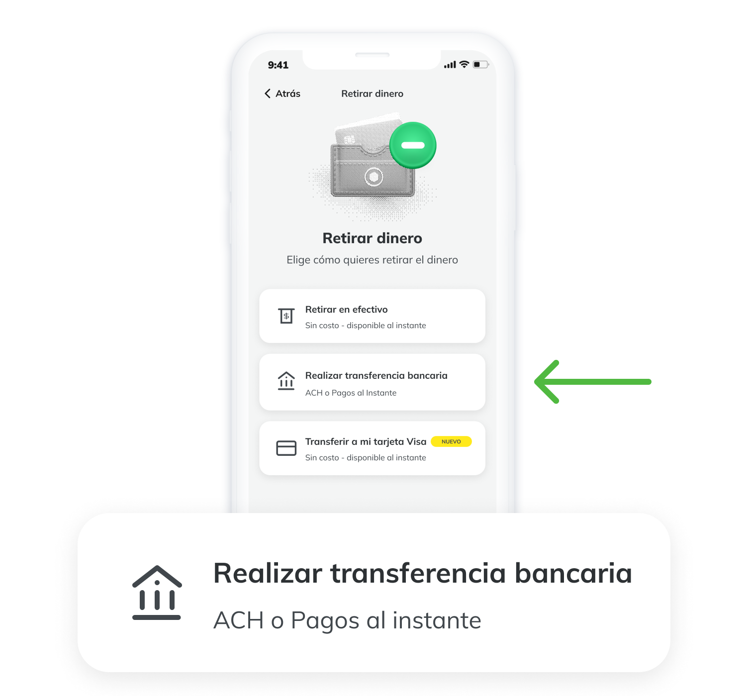 1) Presiona en la opción "Retirar dinero" que está en el menú de inicio