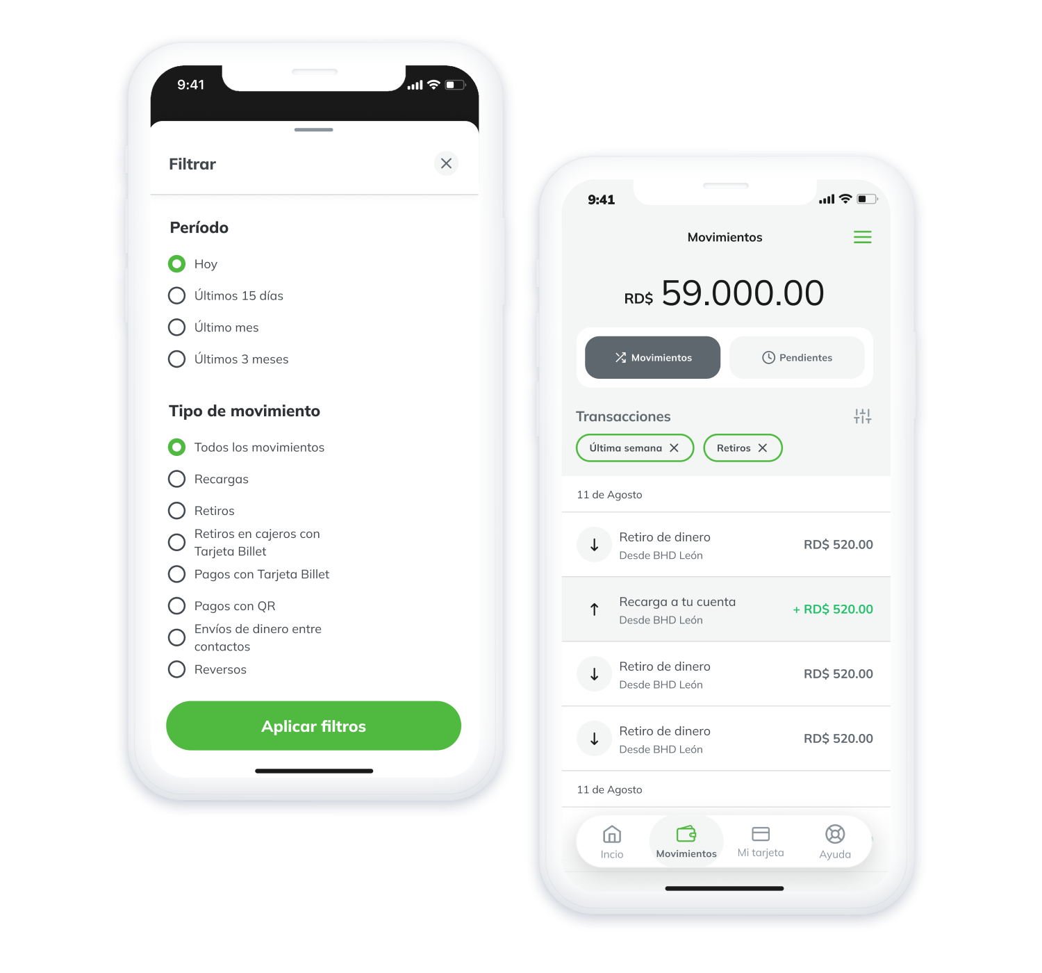 3) Pulsa el botón aplicar filtros y se mostrarán los movimientos según tu selección al filtrar.