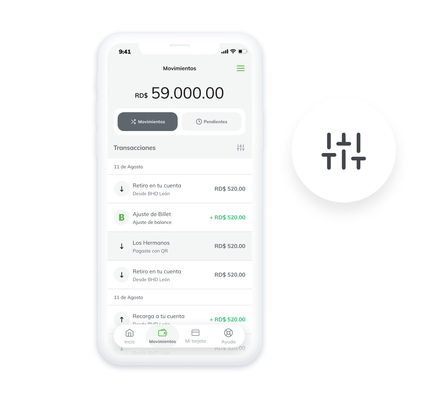 1) Presionar el botón de filtros en la opción de "Movimientos"