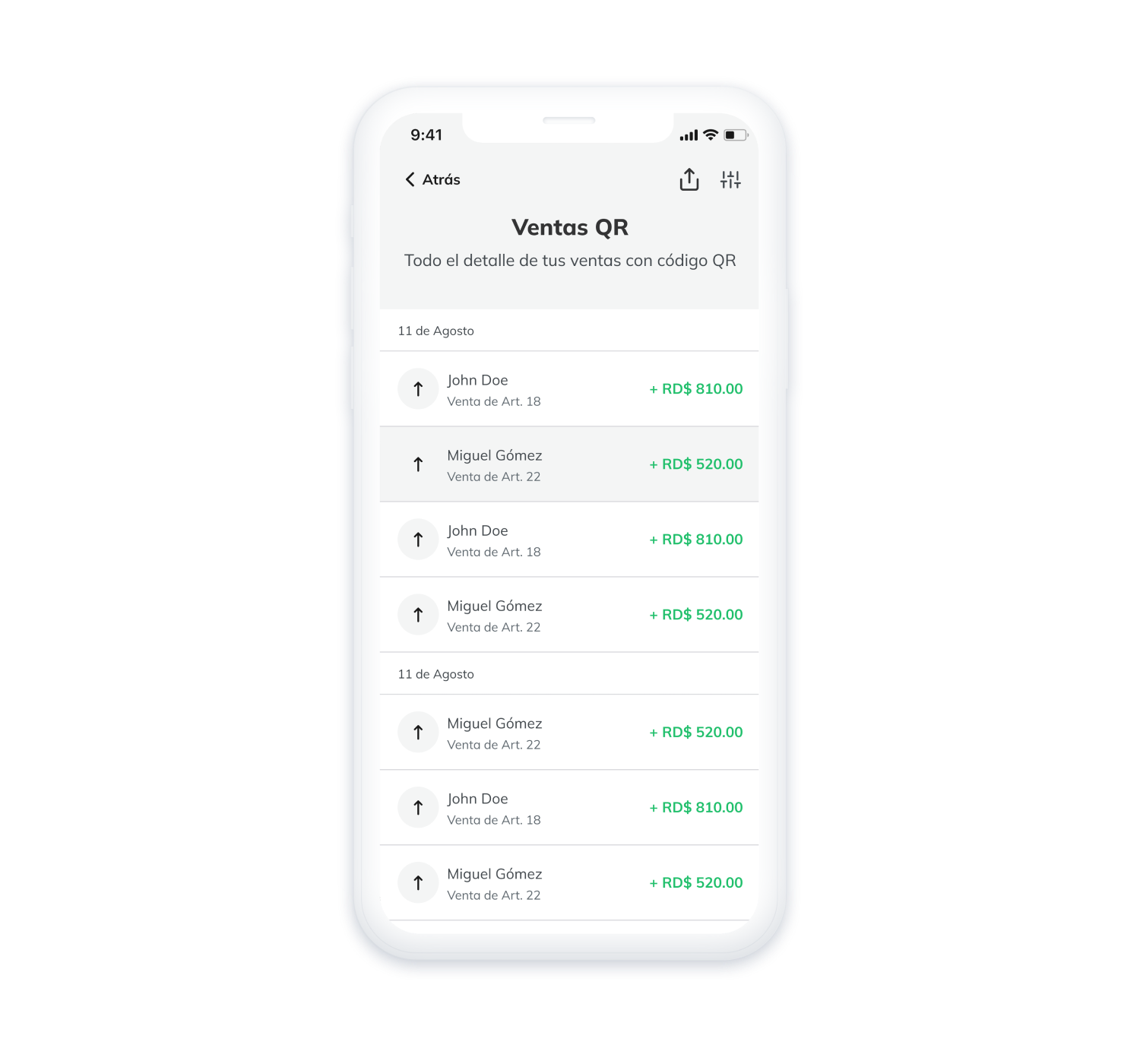 En el menú principal presiona la opción "Mi negocio" y podrás ver las transacciones de QR y enlaces pago a traves del boton "Ventas con QR".