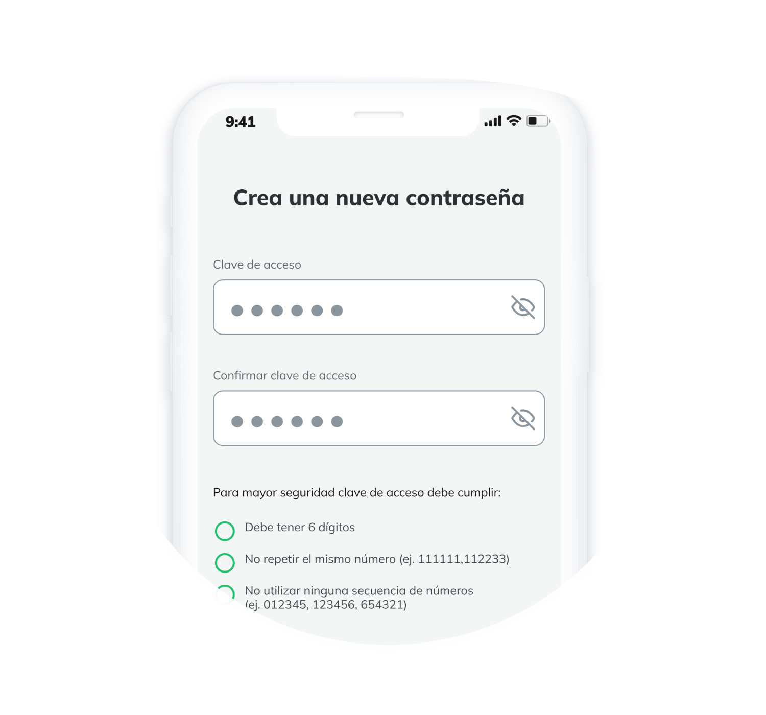 3) Luego de la validación, podrás crear y confirmar tu nueva contraseña