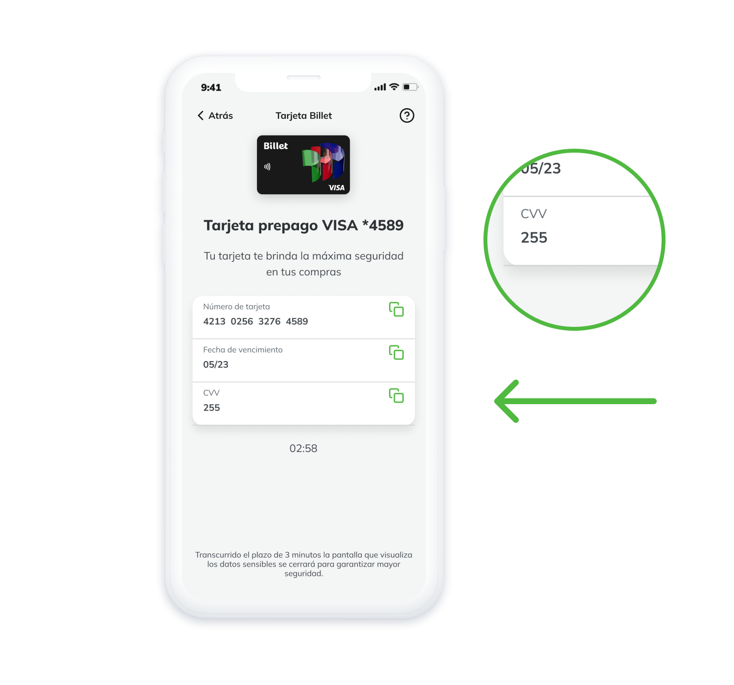 Es un código numérico que cambia cada 3 mínutos para reforzar la seguridad durante el proceso de compra tanto digital como física. Puedes visualizarlo cuando en la aplicación haces clic a tu tarjeta, en la opción '' ver datos''.